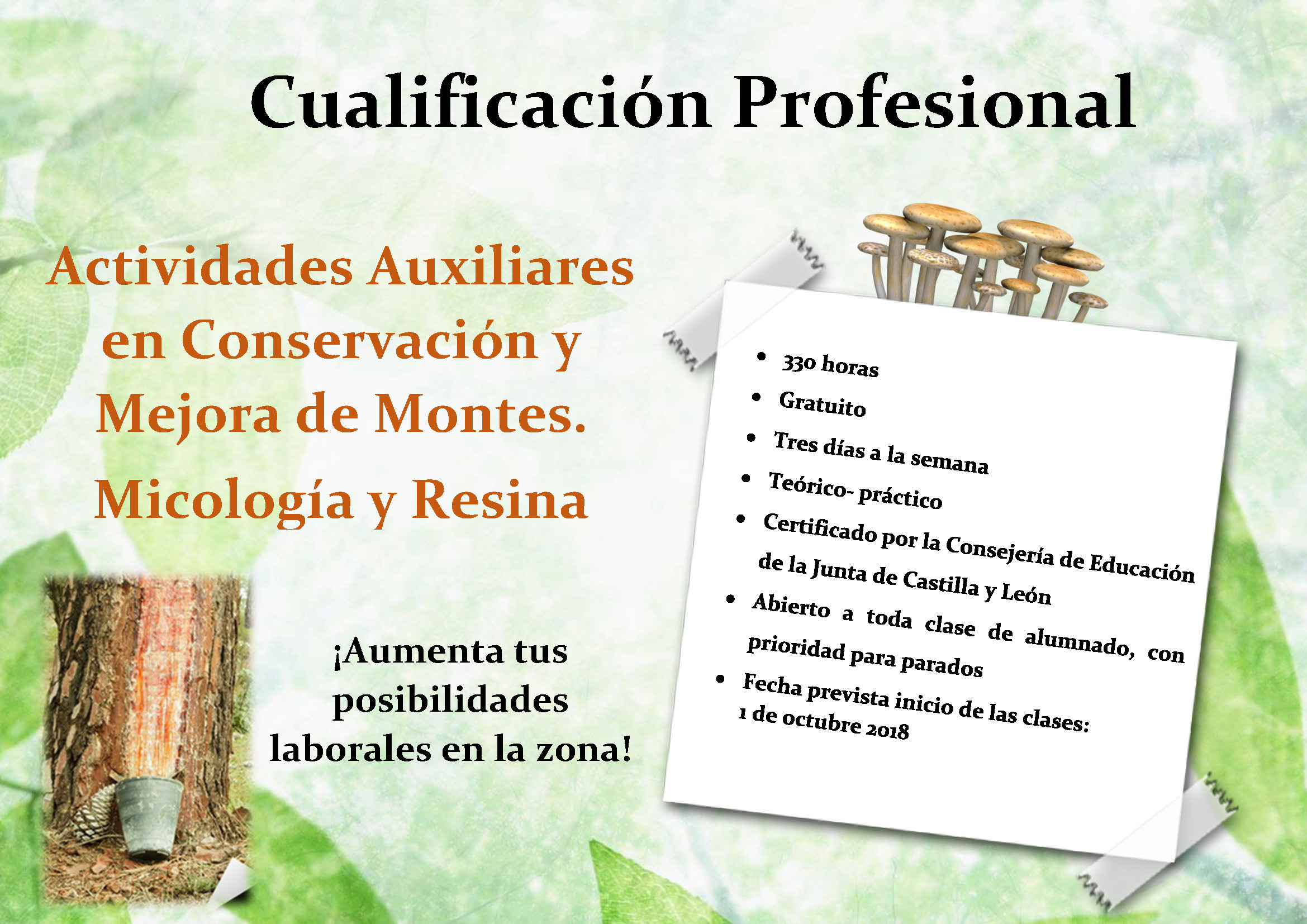 El Centro de Educación de Personas Adultas de Almazán ubicado en la Calle Buen Maestro 2, va a ofertar, entre otras actividades, la Cualificación Profesional de "Actividades Auxiliares en conservación y mejora de montes. Micología y Resina".