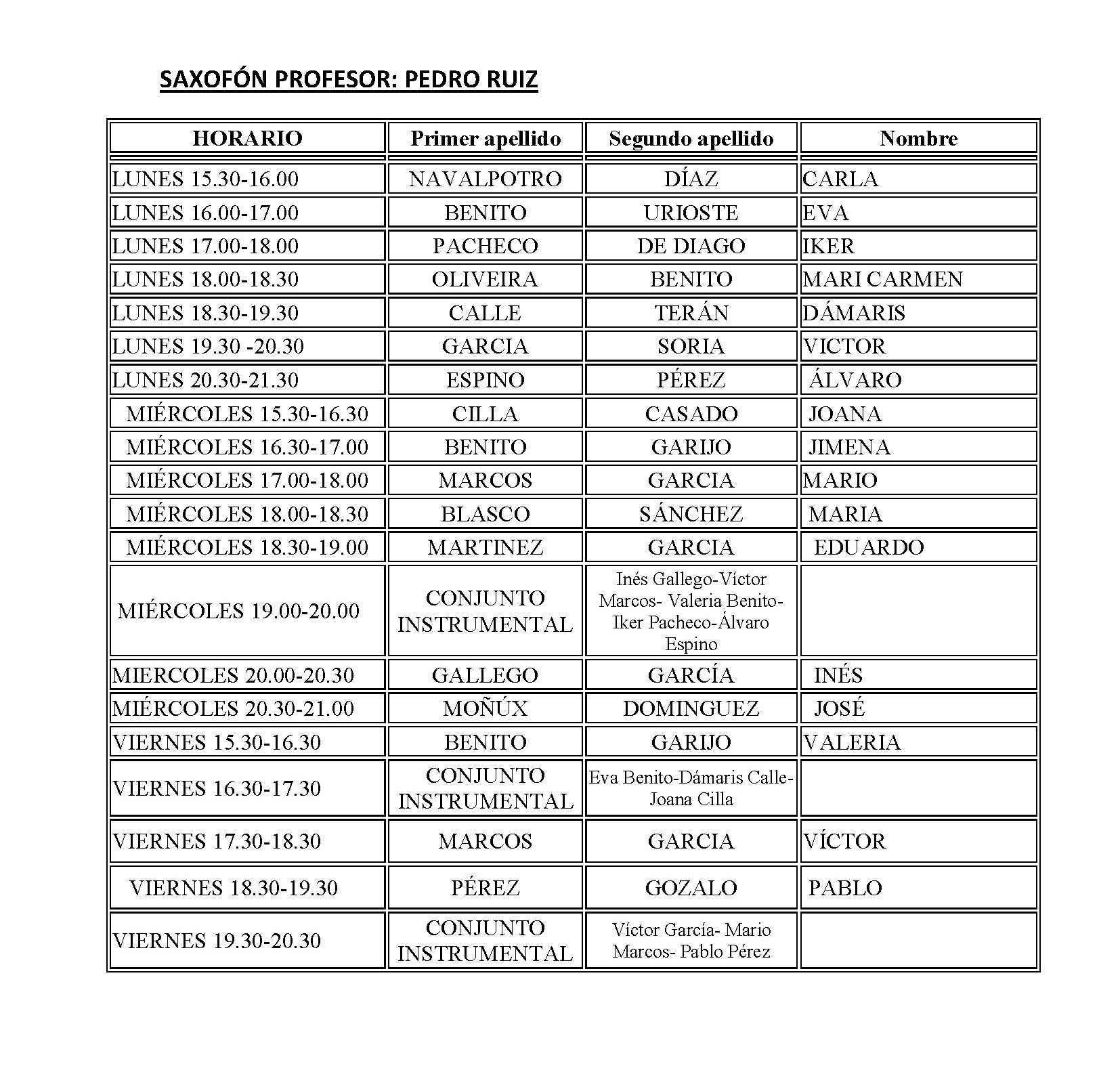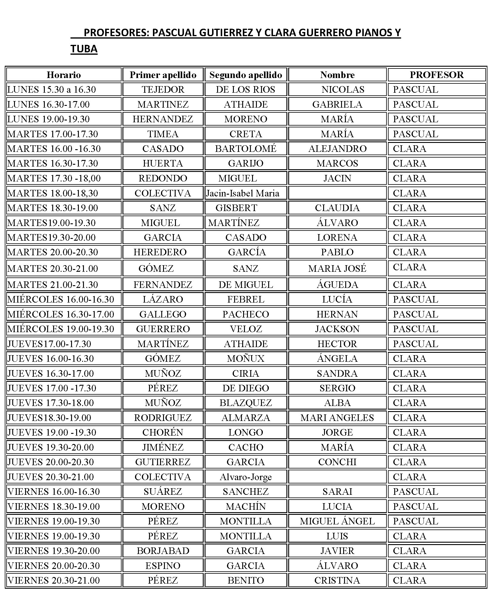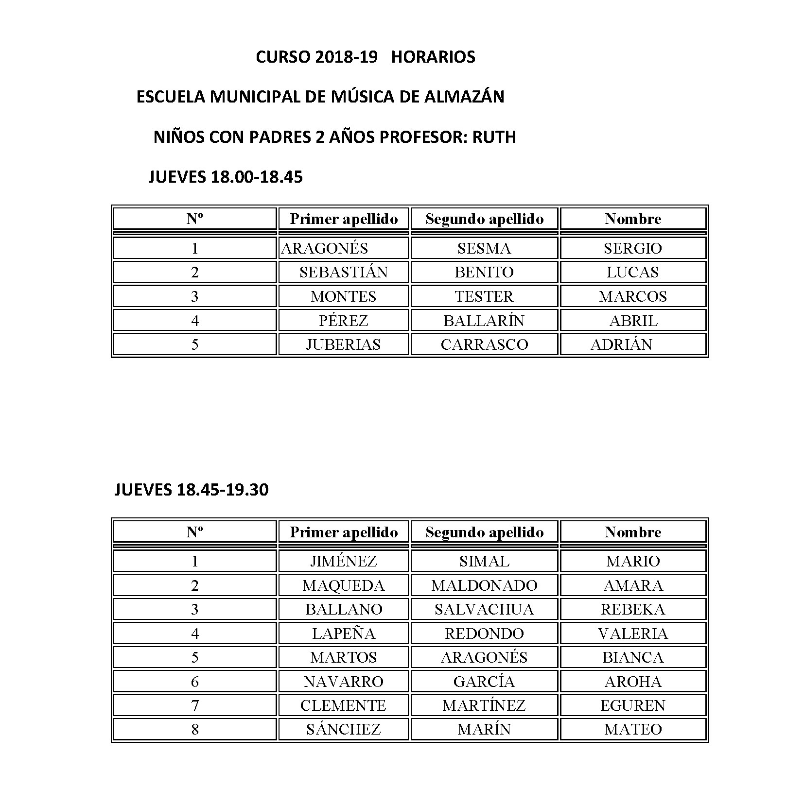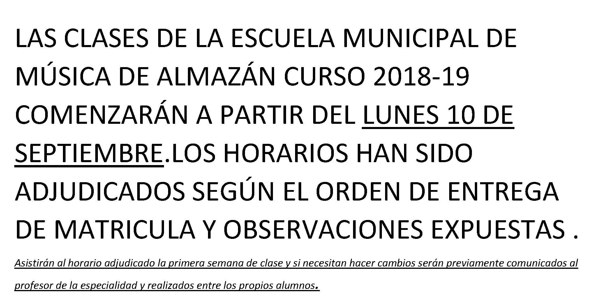 ESCUELA MUNICIPAL DE MÚSICA - HORARIO CURSO 2018-2019