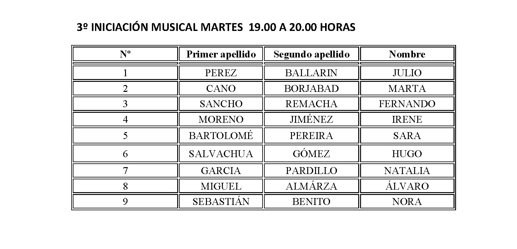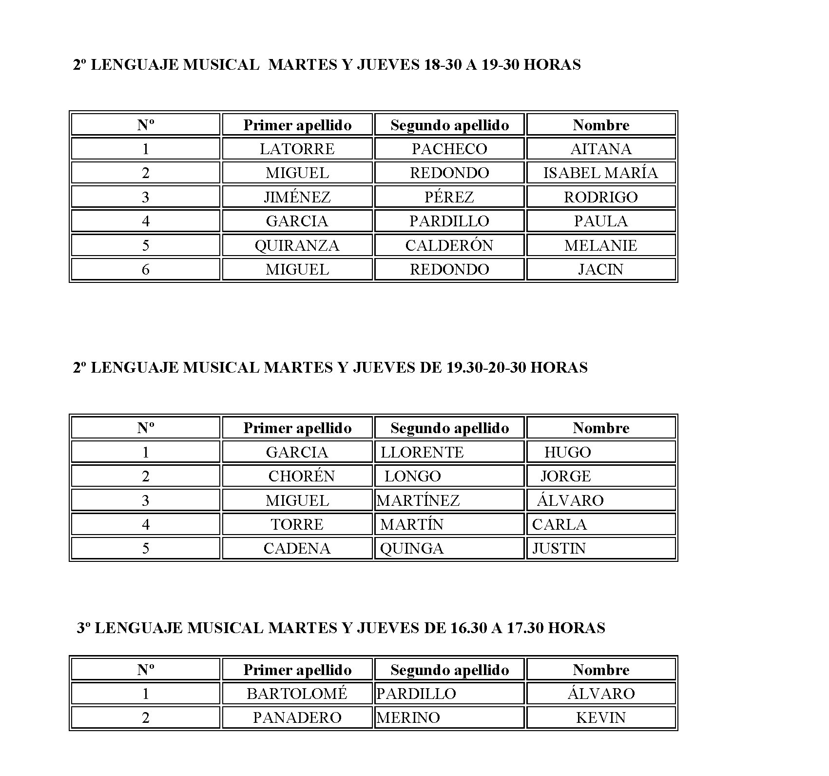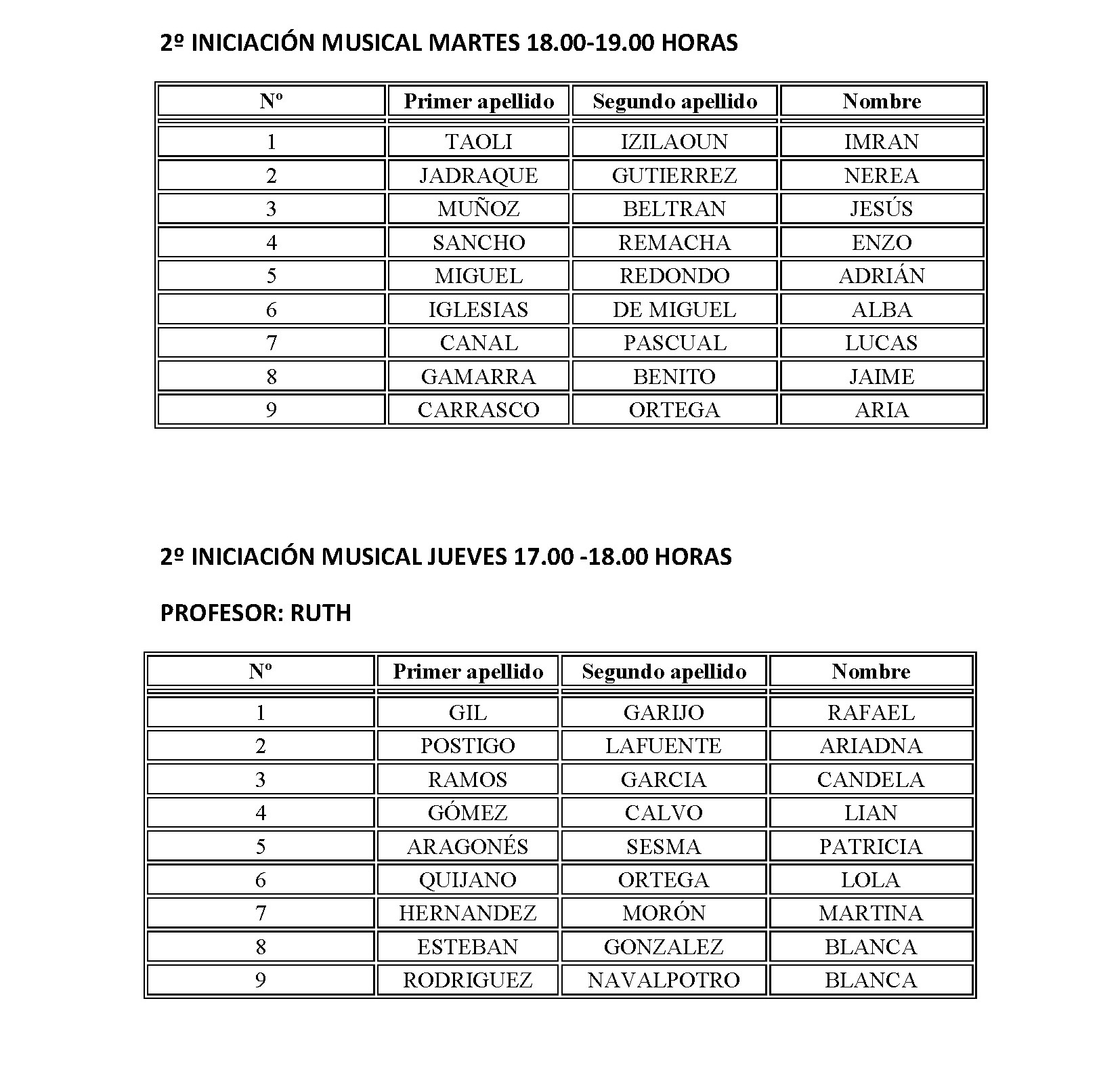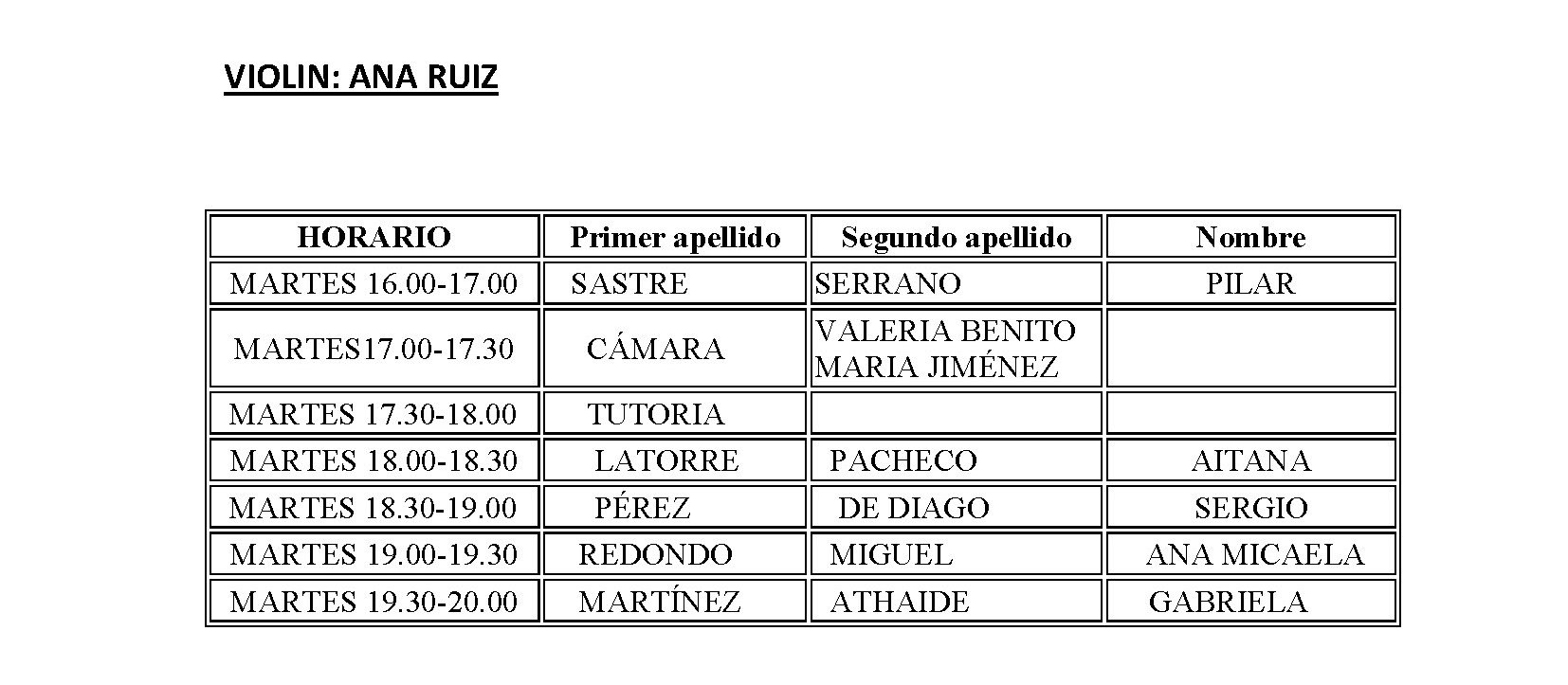 ESCUELA MUNICIPAL DE MÚSICA - HORARIO CURSO 2018-2019