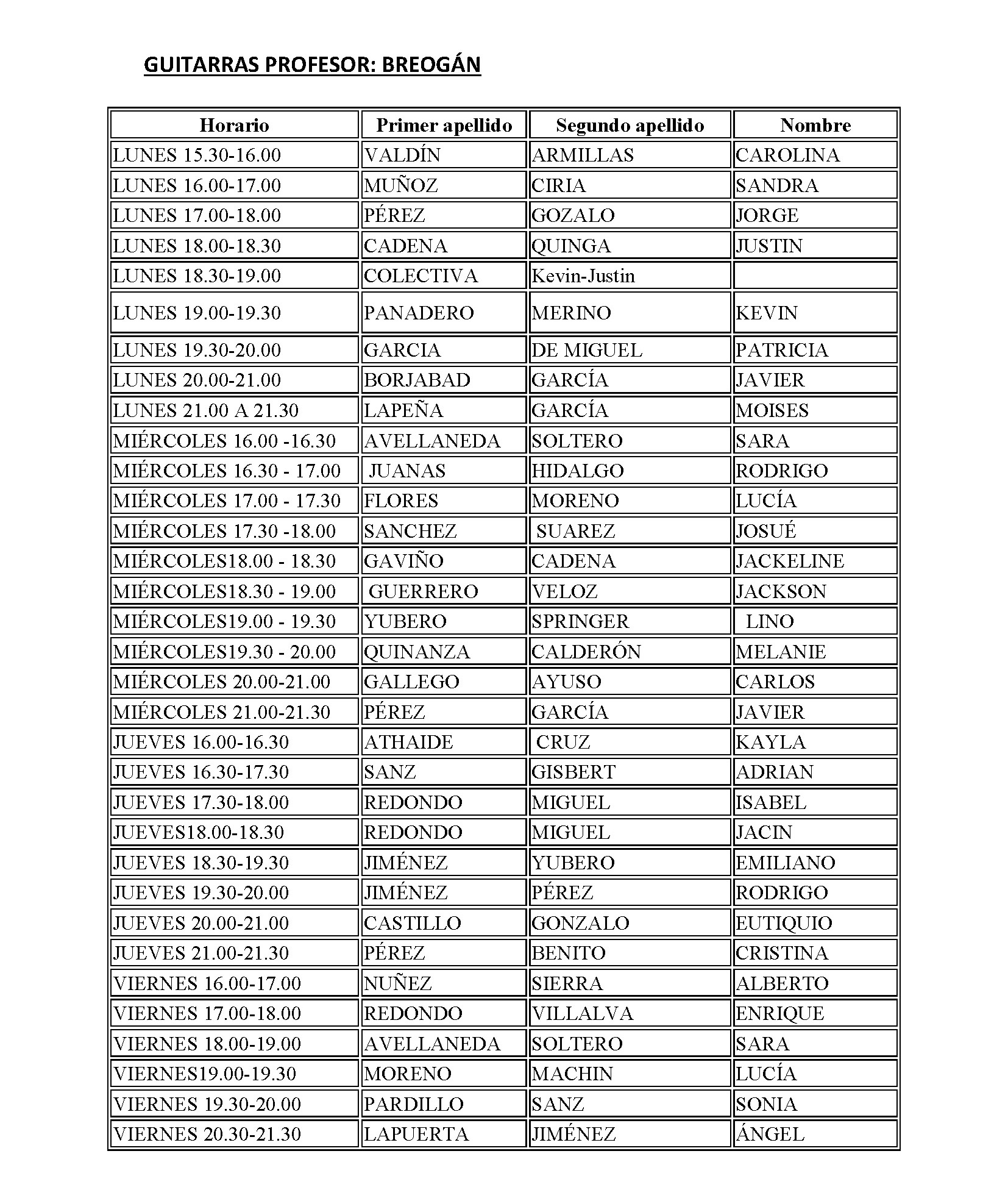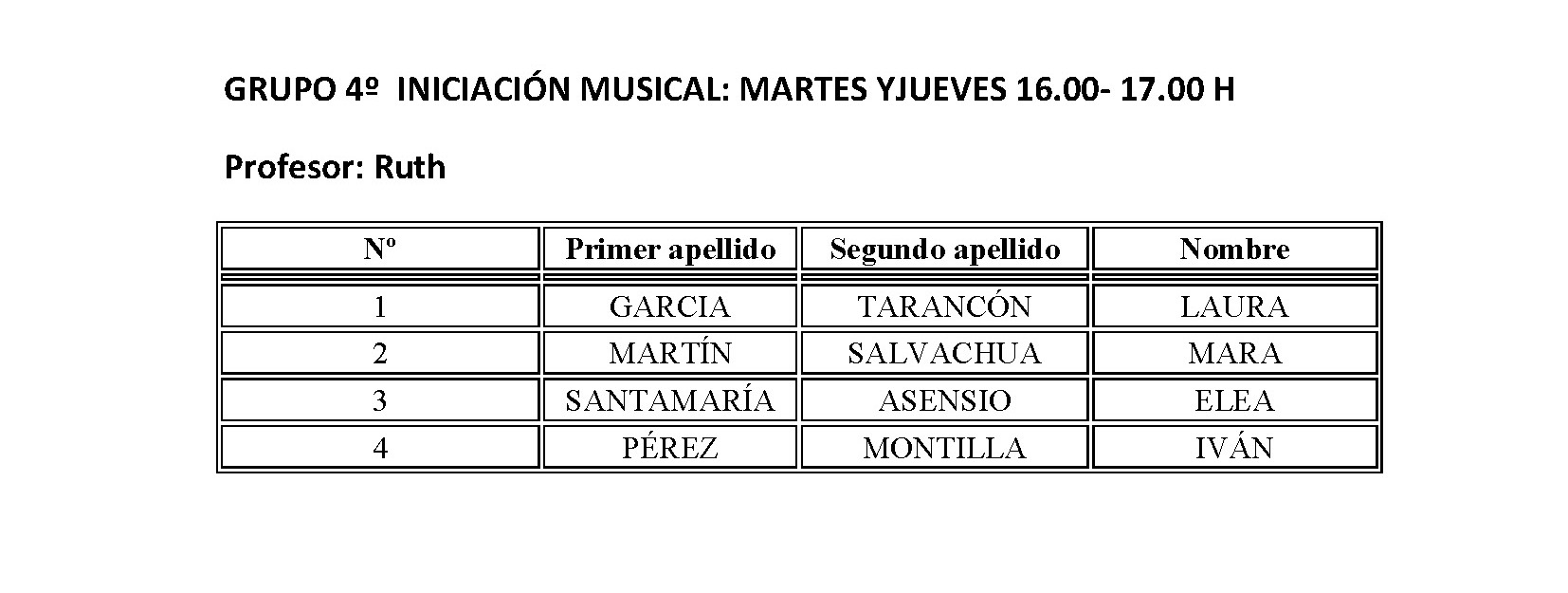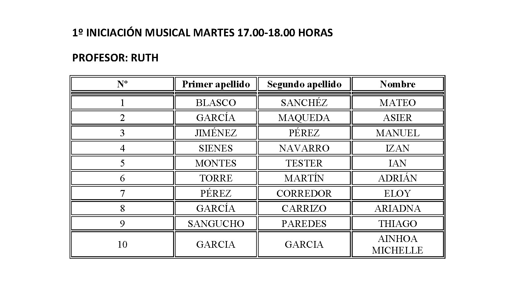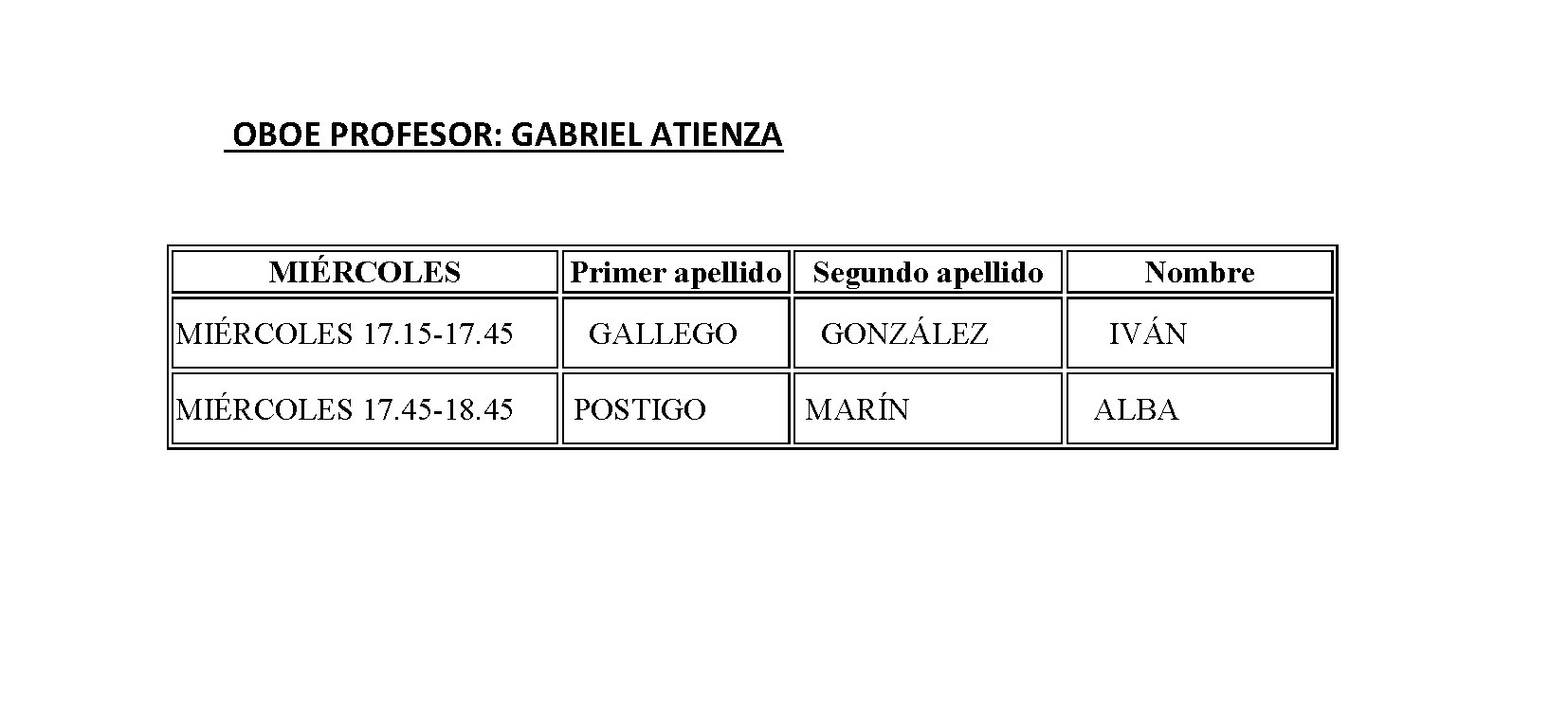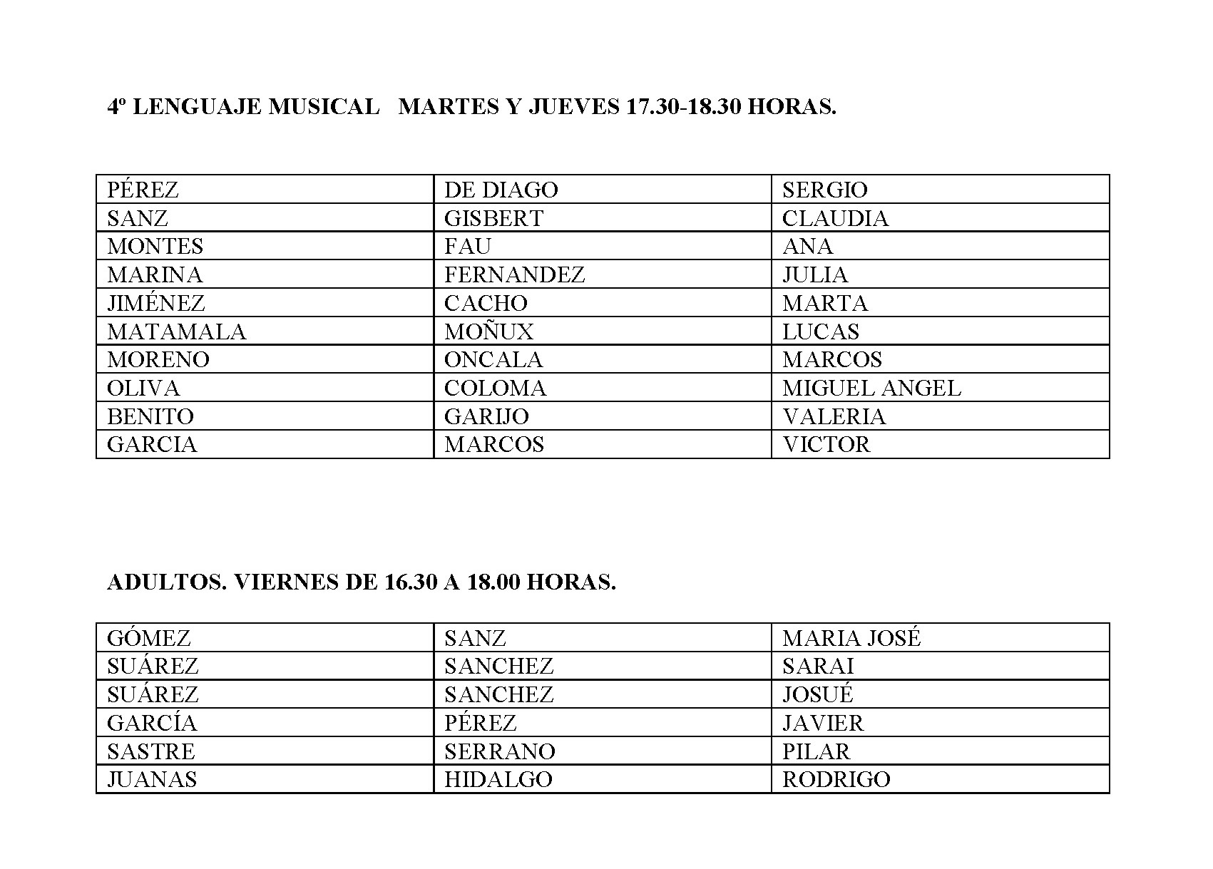 ESCUELA MUNICIPAL DE MÚSICA - HORARIO CURSO 2018-2019